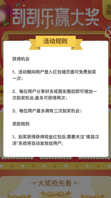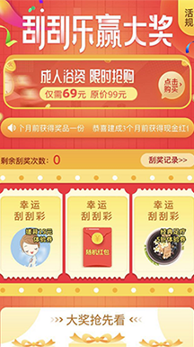 刮刮樂(lè)游戲是以另一種形式呈現(xiàn)出來(lái)的“紅包墻”游戲(活動(dòng)規(guī)則和紅包墻類(lèi)似),參與感不再是單調(diào)的點(diǎn)擊,需要用戶進(jìn)行“刮”動(dòng)指定區(qū)域,讓用戶有一種“刮彩票”的感覺(jué),不局限于“紅包墻”的被動(dòng)式的等待,刮刮樂(lè)的目的是增強(qiáng)用戶的體驗(yàn)感和新鮮感,讓用戶感受不一樣的游戲樂(lè)趣。